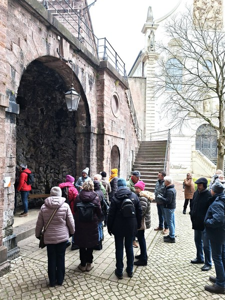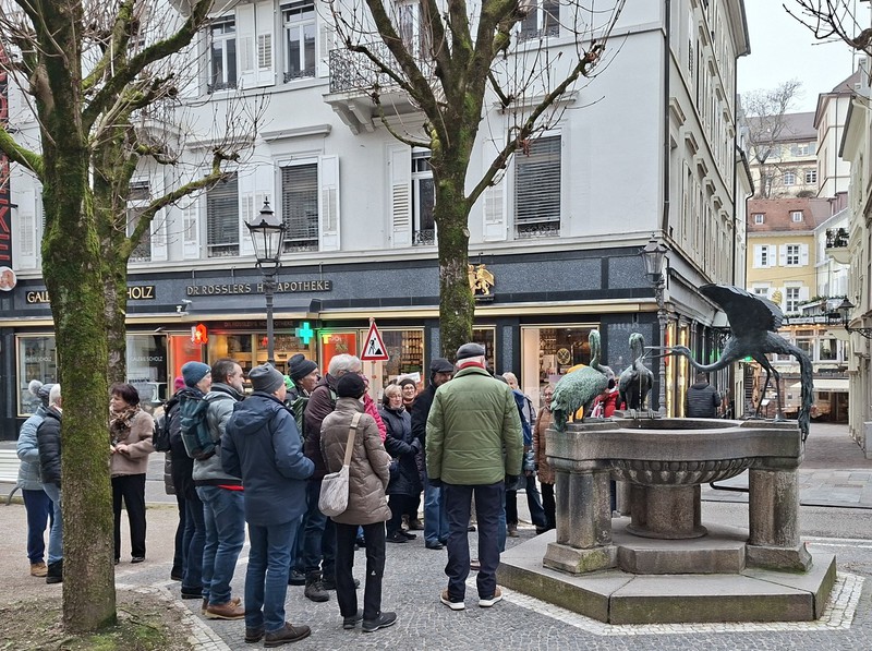 Passend zur Jahreszeit bei Kälte und nebligem Wetter erlebten 27 Wanderinnen und Wanderer des Schwarzwaldvereins Bühlertal in der vergangenen Woche "Baden-Baden im Winter". In einer kurzen Runde führte Jürgen Höll durch Baden-Baden mit dem Schwerpunkt "Römische Badruinen" und die Geschichte der Stadt. Vor dem leider verschlossenen Museum der Römischen Badruinen unter dem Friedrichsbad erzählte Höll von den Anfängen der Stadt im ersten Jahrhundert n. Chr. bis zum Einfall der Alemannen im 3. Jahrhundert. Wie warm das Thermalwasser ist, konnten die Teilnehmer an der "Fettquelle" selbst testen. Nach dem Aufstieg zum Dampfbad und weiteren Informationen zu den Thermen ging der Wanderführer in der warmen Stiftskirche näher auf die Geschichte Baden-Badens ein. Anschließend erfolgte der Aufstieg zum neuen Schloss, bevor es hinab in die Stadt und durch die menschenleeren Kuranlagen wieder zum Bus ging. Bei der Einkehr in der "Geroldsauer Mühle" dankte Rainer Rübig dem Wanderführer für die Organisation der Tour.