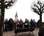 genutzt. Nach kurzer Rast am Rebberg, bei der die Wanderführer eine Runde Secco ausschenkten, ging der Weg weiter am Wasserbehälter Eckwald vorbei zur Klosterkirche Maria zu den Ketten. Hier hielt